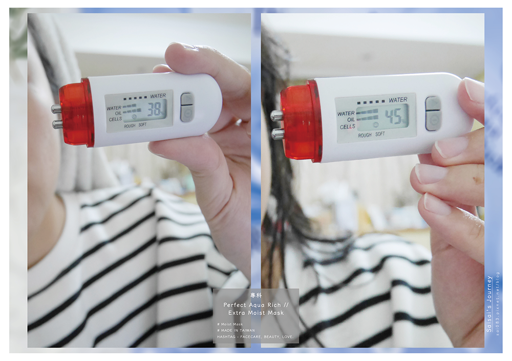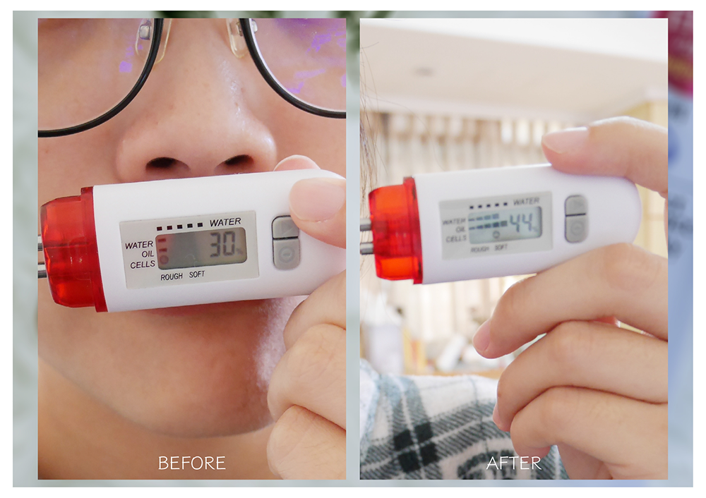 濕敷後的皮膚不但比較透亮之外,保濕度也上升非常多