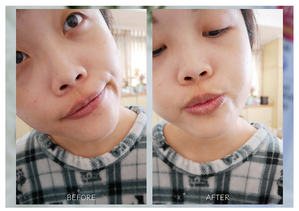 所以在鼻子的部分面膜吸收度更為明顯,臉頰因為沒那麼乾燥,在緊繃的感覺上就比較還好
