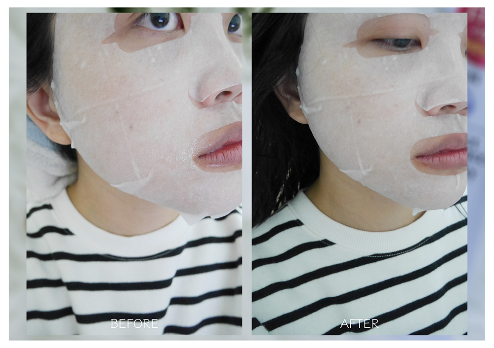 面膜撕除後很快就被肌膚吸收完全,並不會因為面膜的精華比較濃稠,而感到黏膩或是緊繃