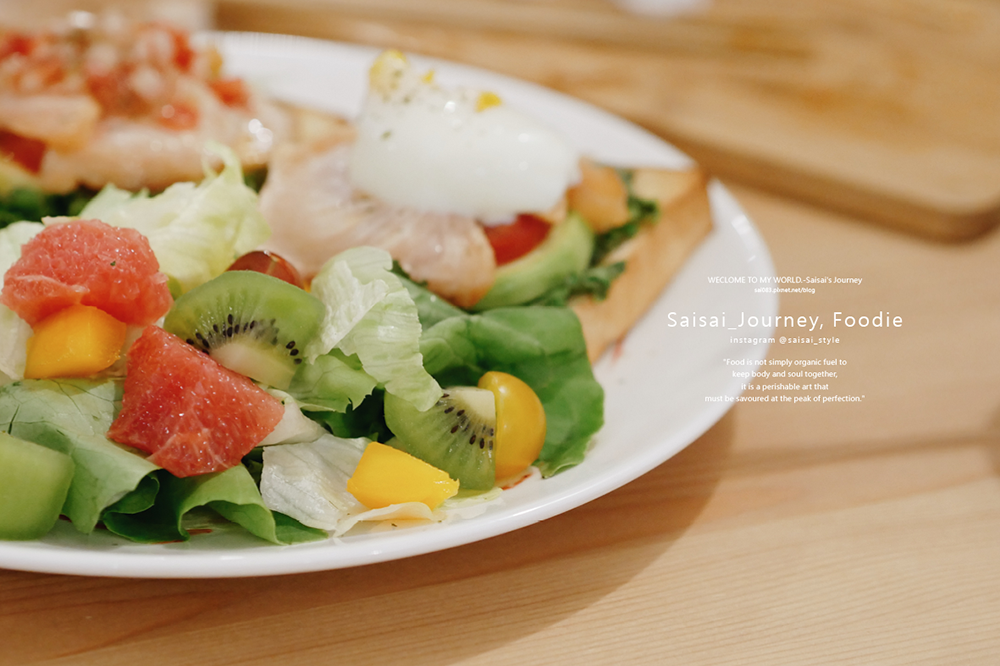 旁邊搭配上的生菜沙拉與水果也是非常的用心,不會單單只是一兩樣的蔬果,則是搭配上了更多的顏色,整體豐富度也增加不少~