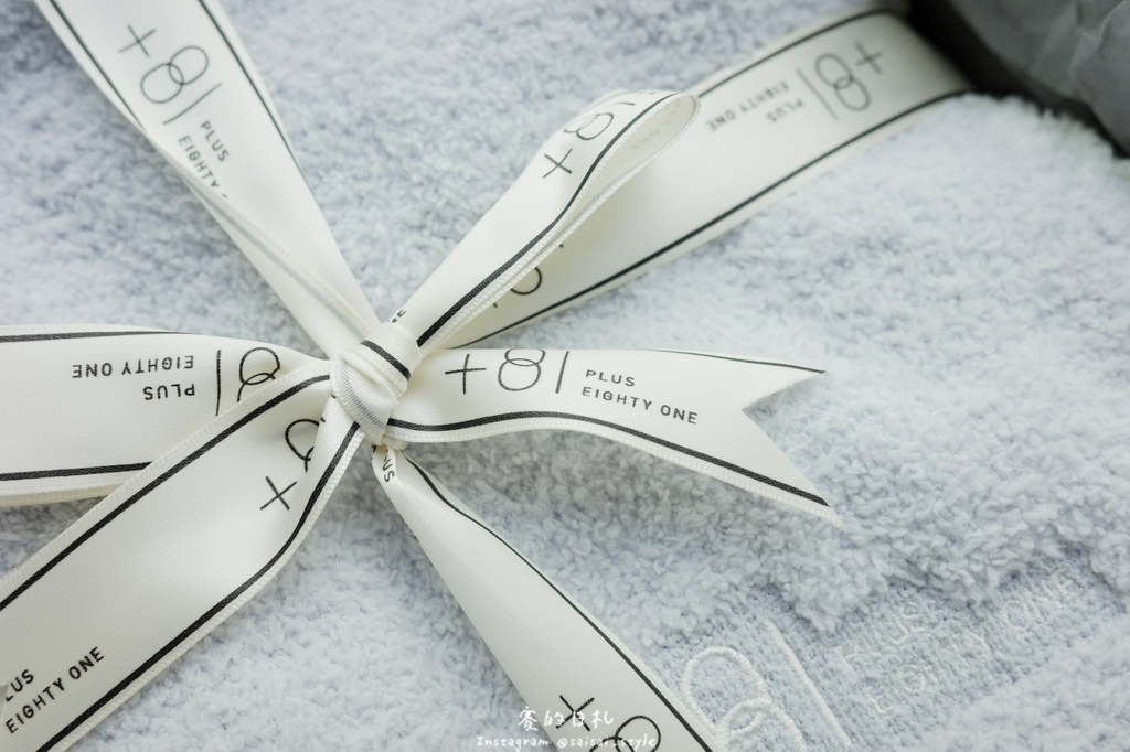 打開後,立刻看到被用緞帶綁起來的小被被,質感滿滿的畫面讓人心情大好。