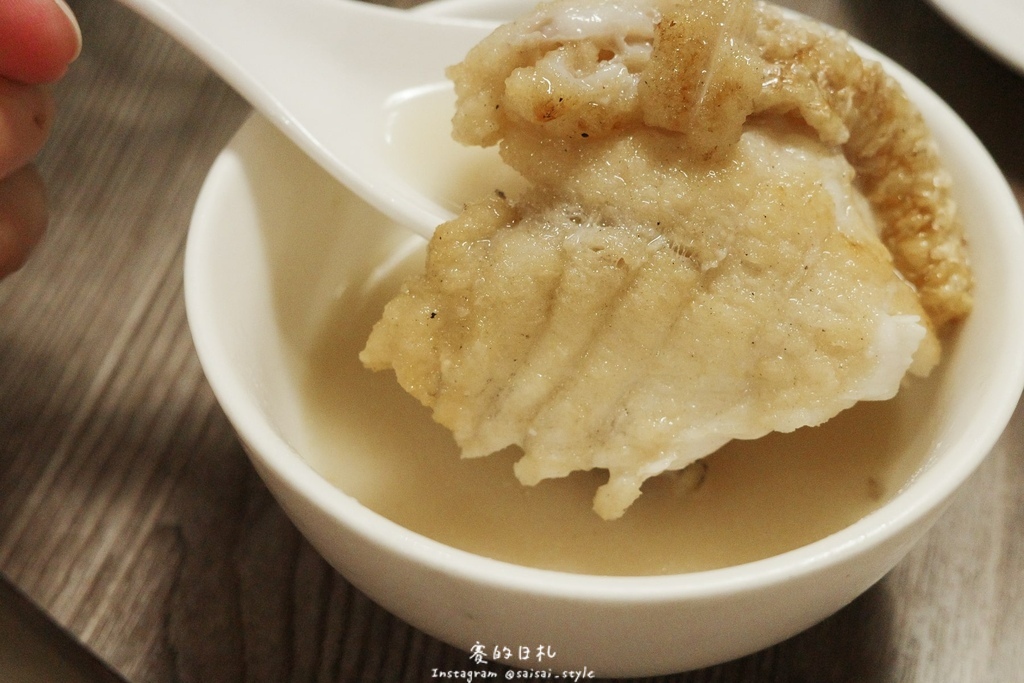 這道湯品完全是莆田的溫暖代表!使用台灣鱸魚煎香後入鍋,搭配以老母雞細火熬煮八小時的湯底,呈現乳白色的濃郁湯頭,入口瞬間就能感受到滿滿的膠質感。