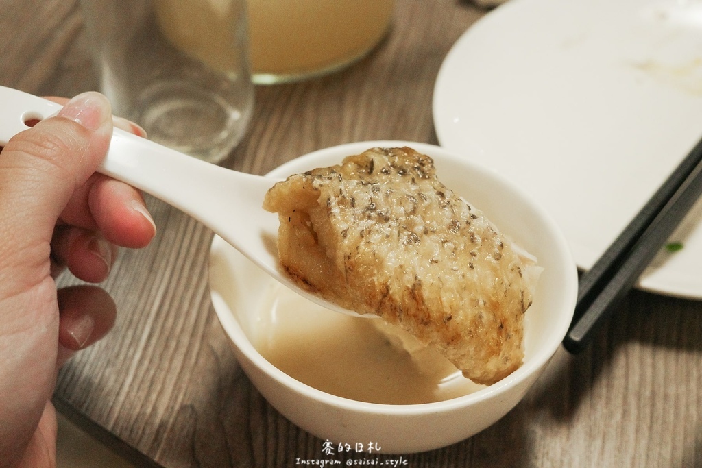 鱸魚肉質細嫩綿密,吸收了湯汁後更加鮮美,搭配微焦的煎香更增添層次。