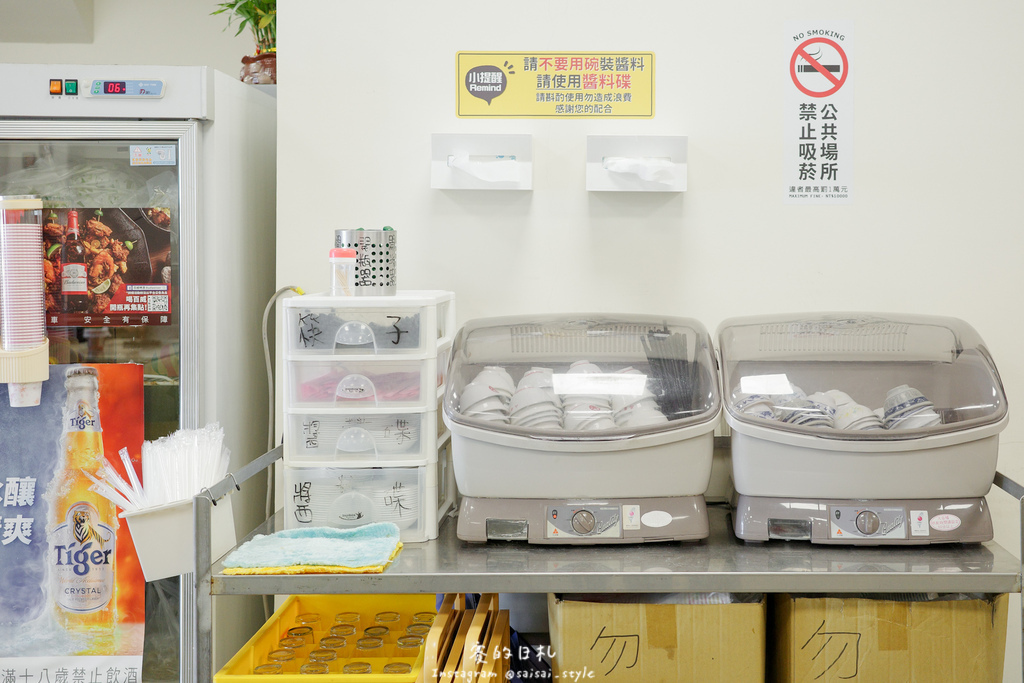 整體環境乾淨整潔,用餐區規劃寬裕,不會有擁擠感,走動拿東西也很方便,店內設有自助區,碗筷與杯子都整齊擺放,入口處的黑板小菜單上寫著當日小菜,像是香辣豬頭皮、涼拌木耳等,都能作為羊肉爐的好搭配。