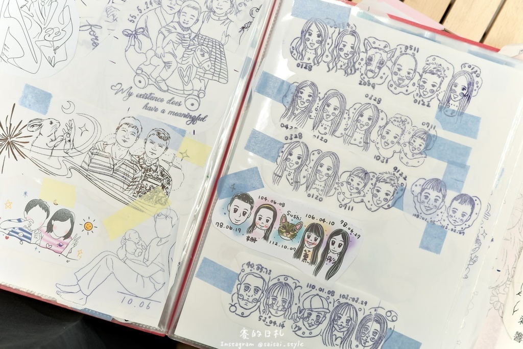 店家提供精美的手稿作品集供顧客參考,這本包含達摩、卡通動物、捕夢網及細膩人像線稿的相簿,是展現刺青師多元技術與風格的最佳方式。